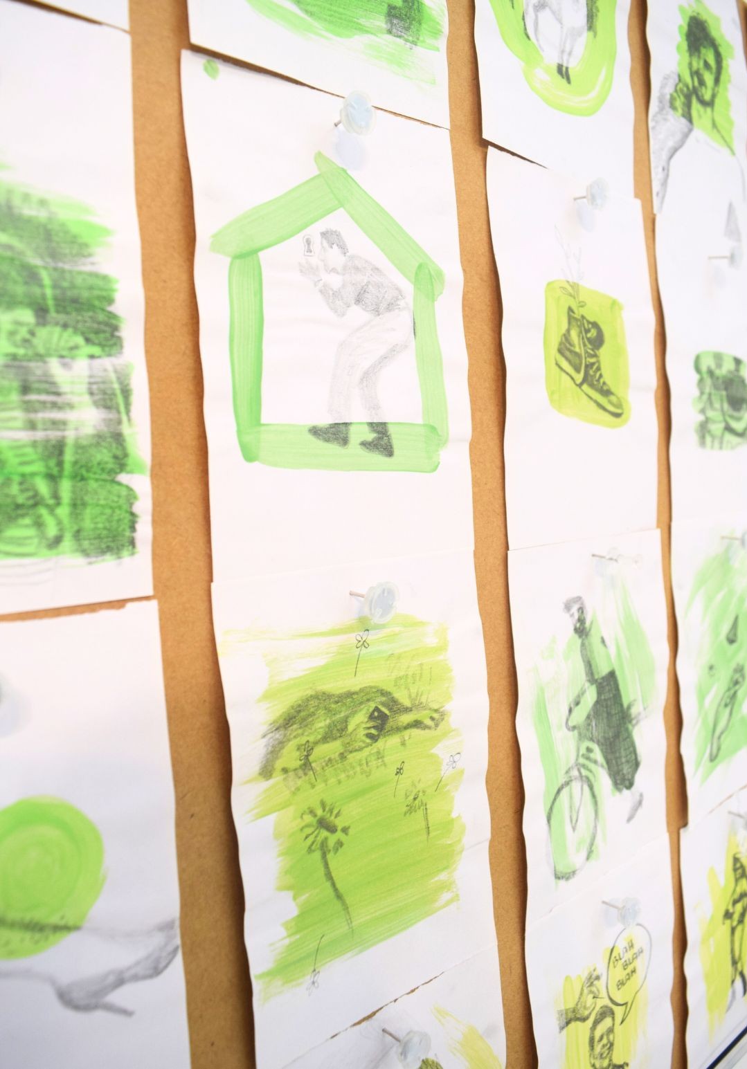 The installation represents a work of collection and visual translation of political life and social expectations. Through the presentation of "what brat is" (from Charli XCX's music album and trend), the installation offers a glimpse of the contemporaneity of summer 2024: from Kamala Harris's electoral campaign to the Olympics, from the fires in Greece to the Israeli-Palestinian war, from the gender issue to the trends of the moment.