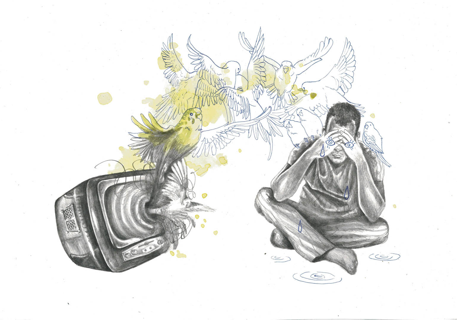Pencil, water colours and ink on paper, 2021