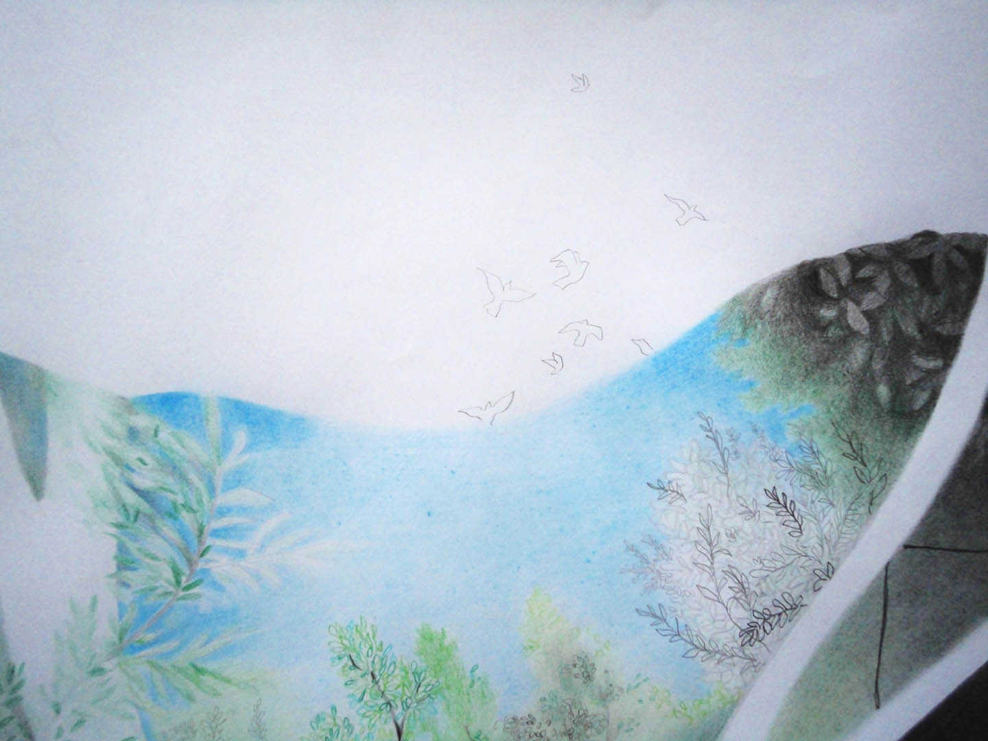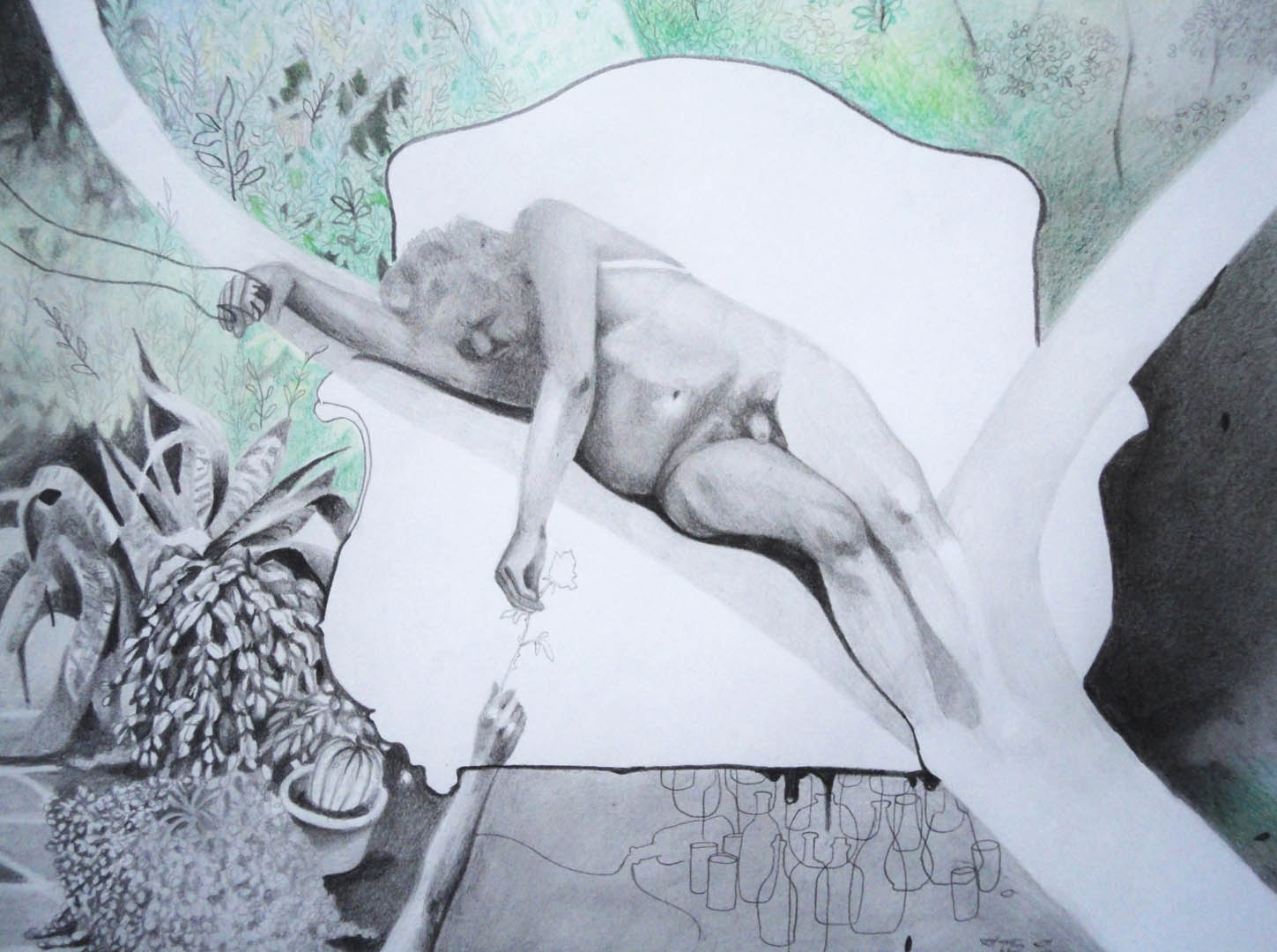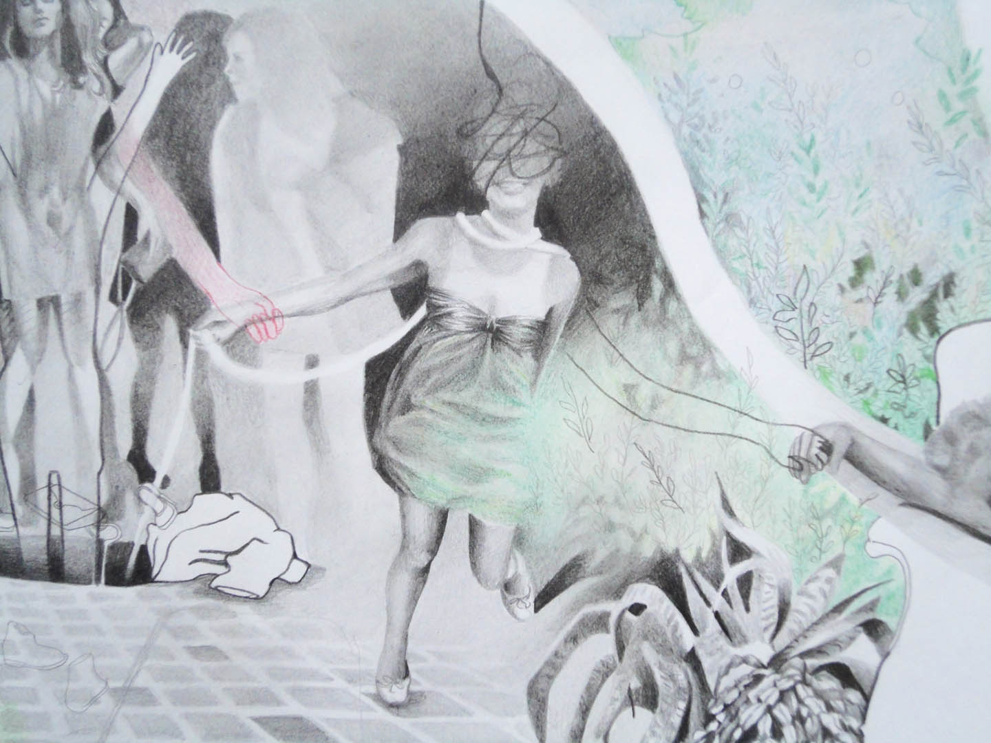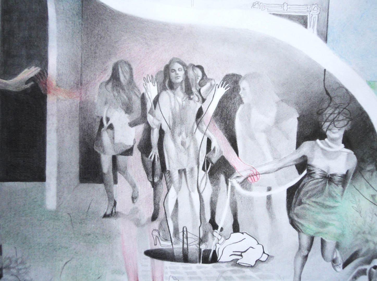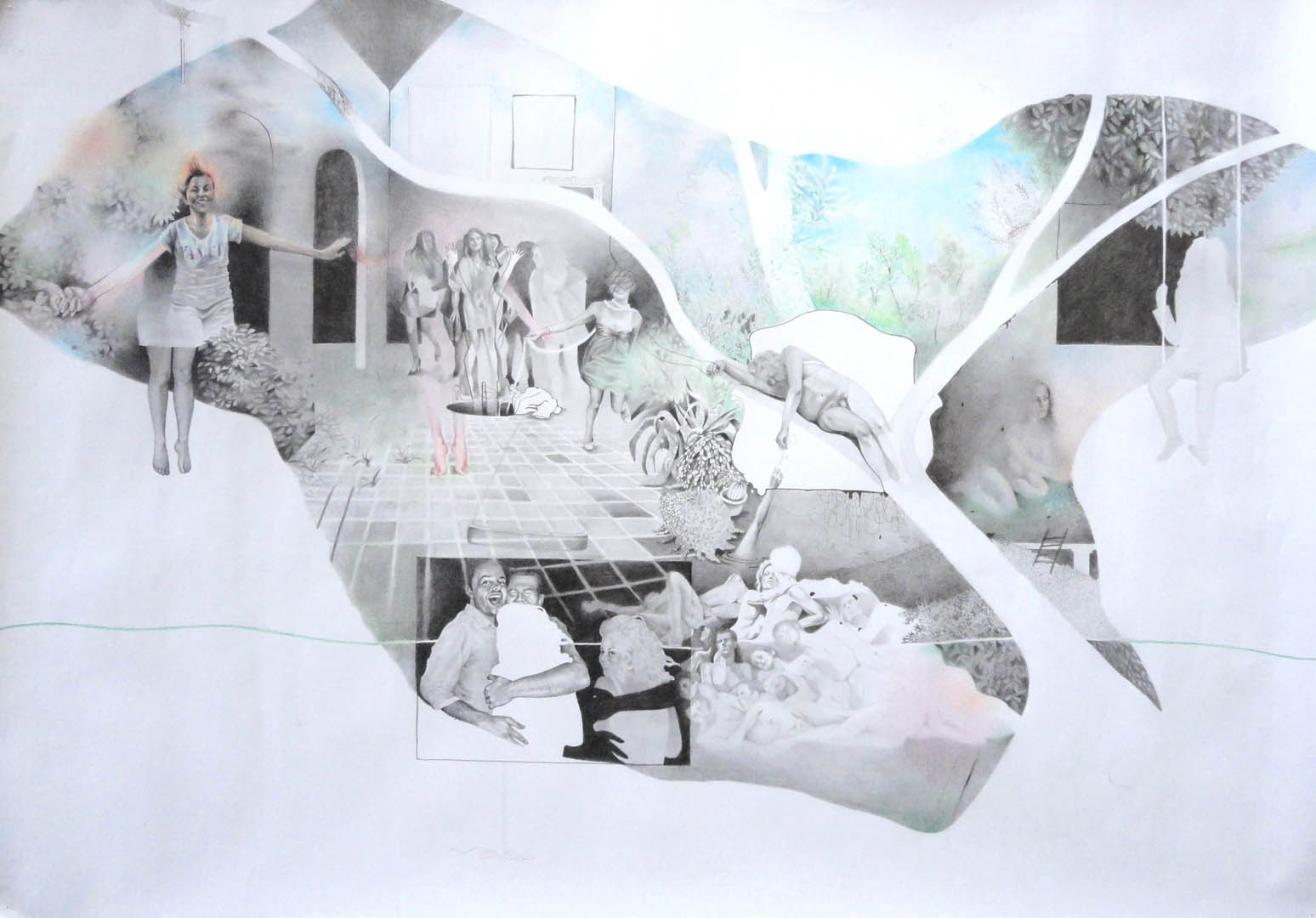 Pencil, pastels and charcoal on paper 110 x 85 cm, 2014.